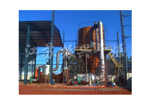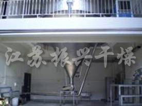 該生產線(xiàn)由供料係統、介質循環係統、空氣加熱淨(jìng)化係統、幹燥塔係統、收料(liào)係統、控製係(xì)統等多個(gè)係統(tǒng)整合而成。主塔(tǎ)係統集中了目前(qián)噴霧幹燥工程的所有尖(jiān)端技術,噴幹機(jī)組的收料係統由一級旋風分離器+布袋除塵器組(zǔ)合形成(chéng)。一級旋風采用高氣量高效率旋風進行(háng)收集,其收粉率(lǜ)能達到96%左(zuǒ)右分(fèn),而布袋除塵器是針對蛋(dàn)白粉類除塵專門設計的優化設備(bèi),能使(shǐ)物料與風進行完(wán)全分離並沉降,布袋為拒水(shuǐ)防油防靜電布袋,過濾目數可達500目以上。